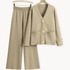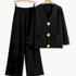 Stylowa koordynacja: Dopasowany kardigan i spodnie z szerokimi nogawkami tworzą elegancki look.